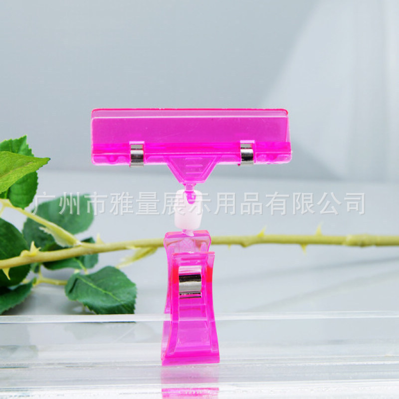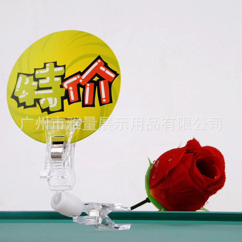 功能:上部分可夹KT板及POP广告纸、标价签等,下部分U型夹可夹货架隔板、圆管,促销车栏杆等,广泛用于超市、药房、面包店等展示价格标签、产品说明、促销说明的店铺,可以360度旋转,高度适中 ,折不断,多种颜色可选,造型精致美观,小巧,能够营造良好的卖场氛围,展示产品高档 |