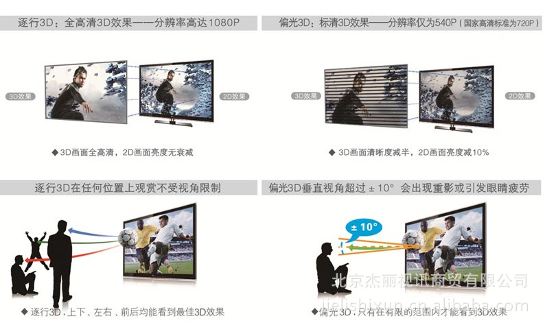 TCL逐行3D,全能3D专家。TCL全高清逐行3D,在保证画面全高清不损失的情况下,依靠领先的3D八大核心科技,实现全通道的2D转3D、兼容全球3D模式,拥有超宽视角,高清不闪等领先技术,真正实现逐点立体,倍加清晰。独有的2D、3D同时看专利技术,可以满足全家不同的需求。