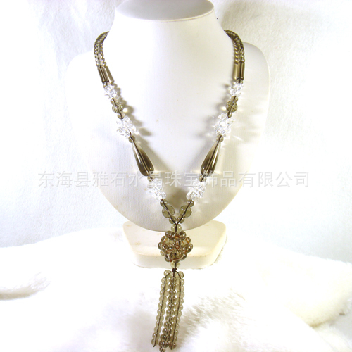 名称:时尚韩版茶水晶+白水晶财源滚滚流苏毛衣链