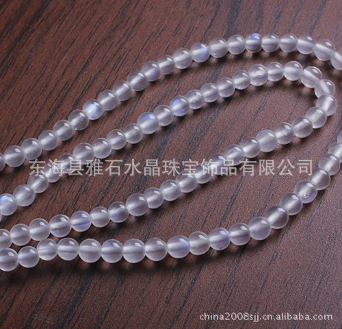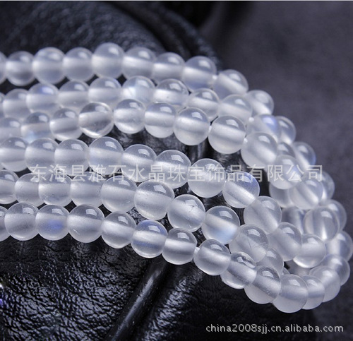 月光石 宝石中有一个长石家族,它们中杰出的代表就是日光宝石和月光宝石。日光石得名于长石中有许多排列整齐、颜色鲜红的矿物小片,小片在光照射时,反射出千万个金光闪闪的亮点,好似太阳四射的光芒;月光石的得名则是因长石晶莹剔透,由于内部有特殊的结构,而闪出淡淡的蓝色,好似幽静夜幕下的月光。传说中,它们分别是太阳神和月亮神赐给人类的礼物。