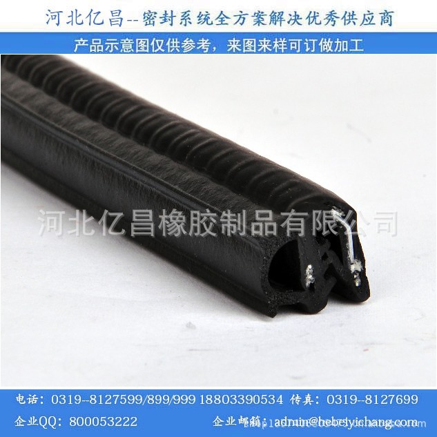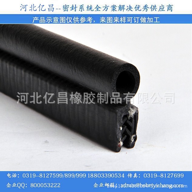汽车用密封条主要是由具有良好弹性和抗压缩变形、耐老化、臭氧、化学作用、较宽的使用温度范围(-40℃~+120℃)的三元乙丙橡胶(EPDM)橡胶发泡与密实复合而成,内含独特的金属夹具和舌形扣,坚固耐用,利于安装。