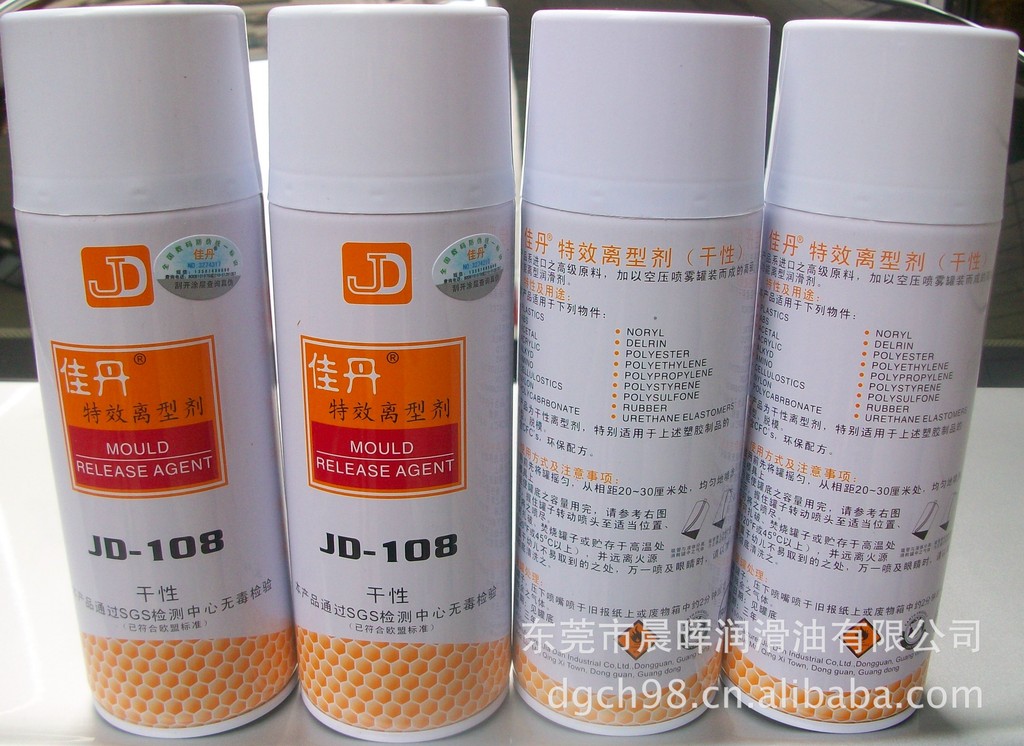 品名:干性离型剂(脱模剂)型号:JD-108概述:选用进口之高级原料调制而成,不含CFC’S 环保配方。特别适用PIASTICS、ABS PVC、PP、PE等塑胶产品的离型、脱模,不影响丝印、电镀、烫金、喷油、粘贴等第二次加工。特性:1.本品为干性离型剂2.无毒且环保性。使用方法:确定产品型号与使用目的一致从相距20CM-30CM处均匀地喷涂在模具上。使用注意事项:工作场所注意通风,严禁吸烟,操作人员必须培训上岗,不得拿着产品对着人员,火种喷射,不可利用利器划破罐体,不可撞击罐体。(划破罐体或撞击罐体有爆炸危险)。储存注意事项:1、储存于阴凉、通风干燥处、远离火种、室温低于45℃仓库内、不可倒置。2、不得靠近热源,酸碱,氧化剂等腐蚀性物质,不可暴晒。3、堆放层数不可超过8箱,且应离地,离墙10CM以上。搬运注意事项:搬运产品时应轻拿轻放,严禁使用抛、摔撞等危险动作。空罐注意事项:1、堆放于规定位置摆放整齐,储存于阴凉、通风干燥处、远离火种,电源,室温低于45℃仓库内,不可暴晒。2、不可跟别的废弃物混装一起。3、使用完的空瓶统一回收于供应商作安全处置,或回收于有资质的回收公司作安全处置。规格:450ML/支包装:24支/箱Q Q:810392738E-MAIL:dgch98@163.comHttp://www.dgch98.com联系:158-76926225高先生。联系:158-76926225高先生
