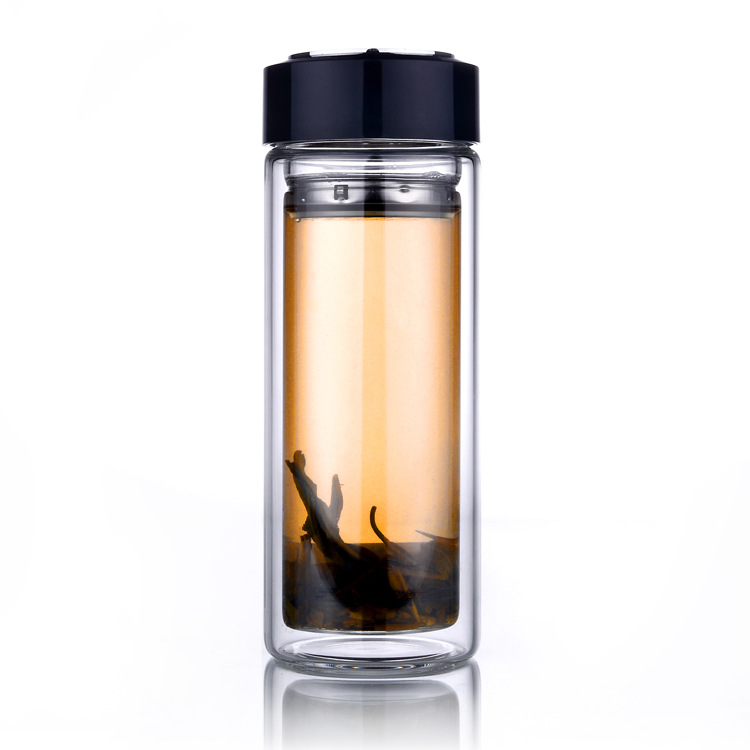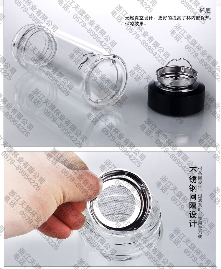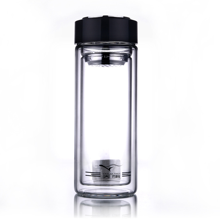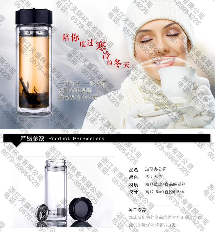 天旗 高级水晶双层玻璃杯子 保温茶杯 马克杯 办公杯 过滤网