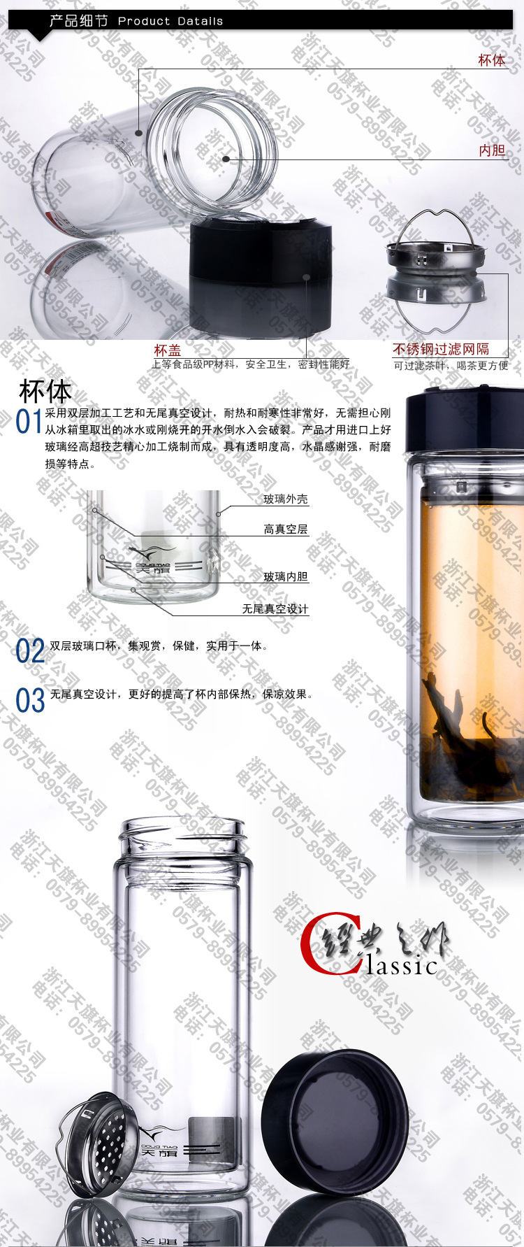 供应 浙江天旗 宫铭系列玻璃水杯 水晶玻璃杯 双层隔热