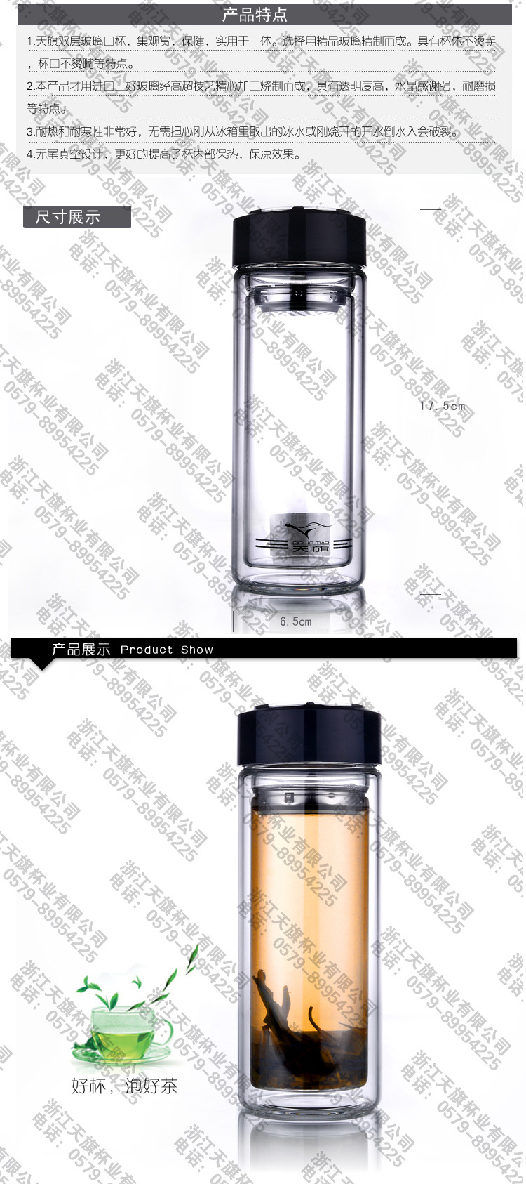 供应 天旗 双层玻璃水杯