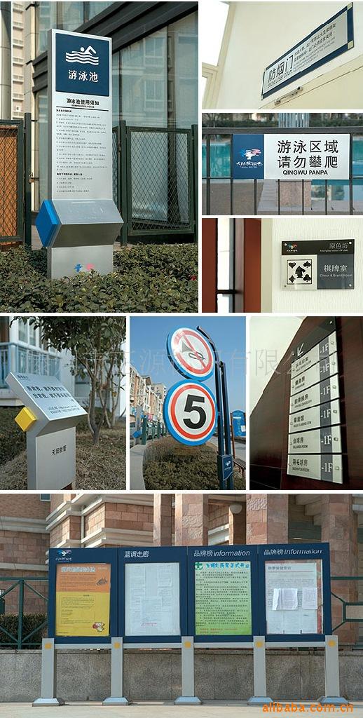 | 房地产标识系统包含内容 1、销售中心标识 户外指示标识、主题标识立牌标识标牌、引导旗、形象墙、样板房指示牌、样板房提示牌、户型图、销售中心指示牌、资料架、模型展示说明、区域指示牌、工程材料展示牌、 功能牌 1)、咨询处标识标牌2)、洽谈处 2、楼宇标识 楼栋牌、楼层牌、单元牌、门牌、单元宣(公告)传栏、电梯乘坐须知、信报箱、消防栓、设备用房门牌、消防疏散图标识标牌 、无障碍通道 3、指示标识 总平图、多项指示牌、物业管理处、停车场指示牌 4、交通警示指示标识 禁止停放牌、禁鸣限速牌、禁止使用牌、车位号码牌、停车场规则牌、自行车停放处 地下车库入口警示牌 1)、限高2)、限速标识标牌3)、直行4)、禁止驶入5)、环境标识 5、环境标识 景观名称牌标识标牌 、小区公共设施使用须知、公告栏、时时为你服务牌、环保垃圾桶、休闲椅 6、环境警示表示 请勿嬉水、请勿攀爬、草地环保牌、珍贵树种树名牌、配电室带警示标语门牌、地下管线警示牌 地面摆放式警示牌 1)、请勿停车2)、小心地滑3)、维修作业中4)、清洁中 7、物业公司标识 物业办公室门牌、物业公司形象牌、物业告示栏标识标牌 、住户意见箱、员工岗位责任制、资料架、请勿大声喧哗、雨伞架、禁烟牌、男女洗手间标识标牌 8、会所标识 会所形象牌、开放时间标识标牌 、会所内功能指示牌、会所楼层功能索引牌、会员守则、各项目收费表、会所功能门牌、总服务台、登记处、通知告示栏、洗手间指示牌、禁烟牌、机房设备牌 |