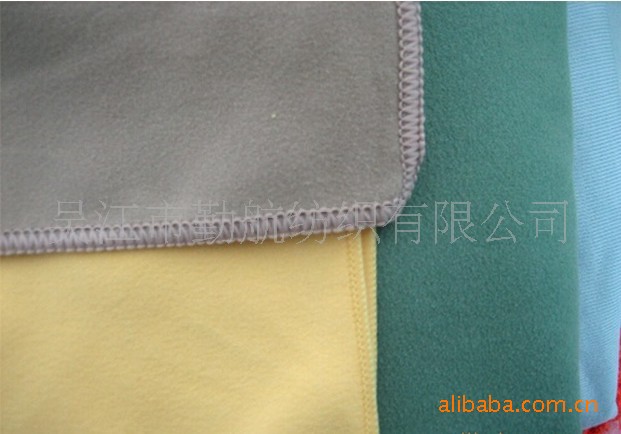 本公司采用合超细纤维生产的高级麂皮绒布,其单丝细度小于0.2dtex,是普通纤维细度的十分之一左右,这种复合纤维特殊纺织、开纤等加工工艺,使纤维与纤维之间形成了毛细效应,纤维密度高,比表面积大,与被擦拭物接触面积大,因此,被擦拭物中的各种水、尘、油污等向纤维内部转移,去污迅速,洁净干爽,透明如新,不掉毛,不霉变,久洗耐用。经测定,其吸水是普通擦拭材料做的清洁布的5倍,耐用耐洗性的3倍。这种洁净布非常柔软,格调高雅。