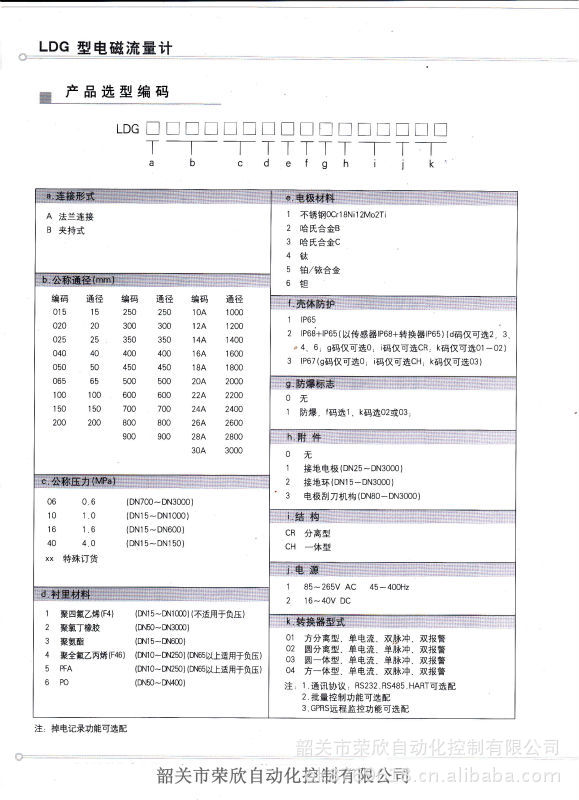 LDG型电磁流量传感器与LDZ型电磁流量转换器(包括LDZ-4B、LDZ-6等,以下简称转换器)配套,组成LD-S型电磁流量计,用以测量各种酸、碱、盐溶液,纸浆、泥浆等导电性液体,或液固两相介质的体积流量。在化工、矿冶、给排水、污水处理、食品、造纸、制糖、港口疏浚等部门得到广泛应用。 LD-S型电磁流量计可与显示、记录仪表、积算器或调节器配套,用来对流量进行检测、积算、调节和控制。 LDG-S型电磁流量传感器具有以下特点: 1、采用整体焊接结构,密封性能好; 2、结构简单可靠,内部无活动部件,几乎无压力损失; 3、采用低频矩形波励磁,抗干扰性能好,零点稳定; 4、仪表指示不受被测介质压力、温度、粘度、密度等物理参数变化的影响; 5、仪表反应灵敏,输出信号与流量成线性关系,量程比宽; 6、由于被测介质只与测量管内衬里和电极接触,容易满足防腐、耐磨损等要求; 7、成套仪表功耗小,(配LDZ-4B<30VA;配LDZ-6<20VA;配LDZ-7<20VA),与传感器的口径大小无关; 8、安装、使用、维护方便; 9、可提供防爆型(口径φ25-φ200),防爆标志Ex dmiaⅡBT4。 型 号: LDG-10S,LDG-25S,LDG-50S,LDG-65S,LDG-80S,LDG-100S、LDG-10S、LDG-15S、LDG-20S、LDG-25S、LDG-32S、LDG-40S、LDG-50S、LDG-65S、 LDG-80S、LDG-100S、LDG-125S、LDG-150S、LDG-200S 、LDG-250S、LDG-300S 、LDG-350S、LDG-400S、LDG-450S