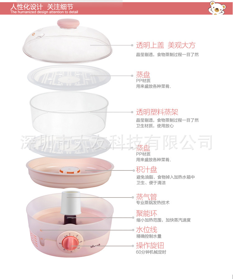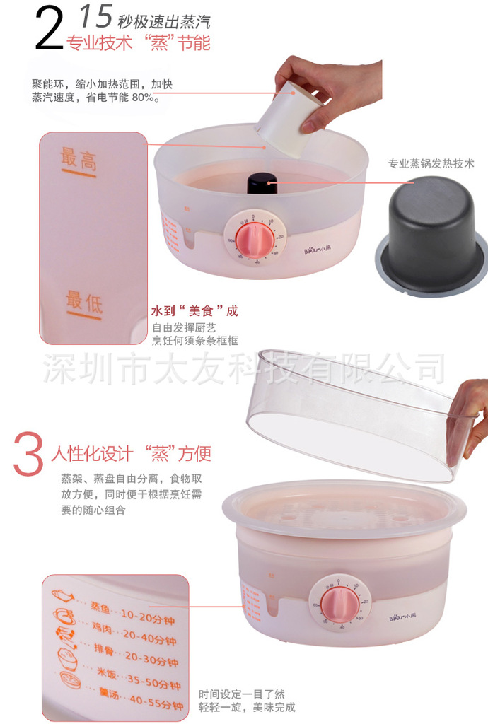 人性化:蒸架与蒸盘采用分离式结构,使用清洗更方便;