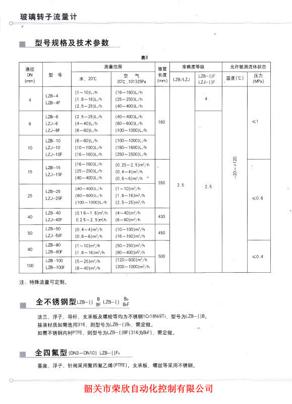 LZB系列玻璃转子流量计是带透明锥管能测量封闭管道中各种液体或气体的瞬间流量,直接观察介质流动状态的指示型仪表,广泛应用与化工、石油、轻工、医疗、化肥、食品、造纸、环保及合成纤维、科学研究等单位。此种仪表具有结构简单、维修方便、价格实惠等优点,所以在国内得到普遍使用。 本厂生产的LZB系列玻璃砖子流量计为适应化工部门的需要,除保持原来基型产品特点外,还制造了新型的有机玻璃转子流量计及高压下使用的金属管转子流量计,在基座等防腐性方面均为内衬聚四氟乙烯,使用单位根据需要任意选择。如有特殊需求,本厂能为客户提供各种非标产品的设计,制造。
