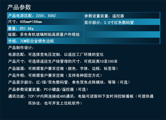 3,产品参数:铝合金边框、喷绘、数码管