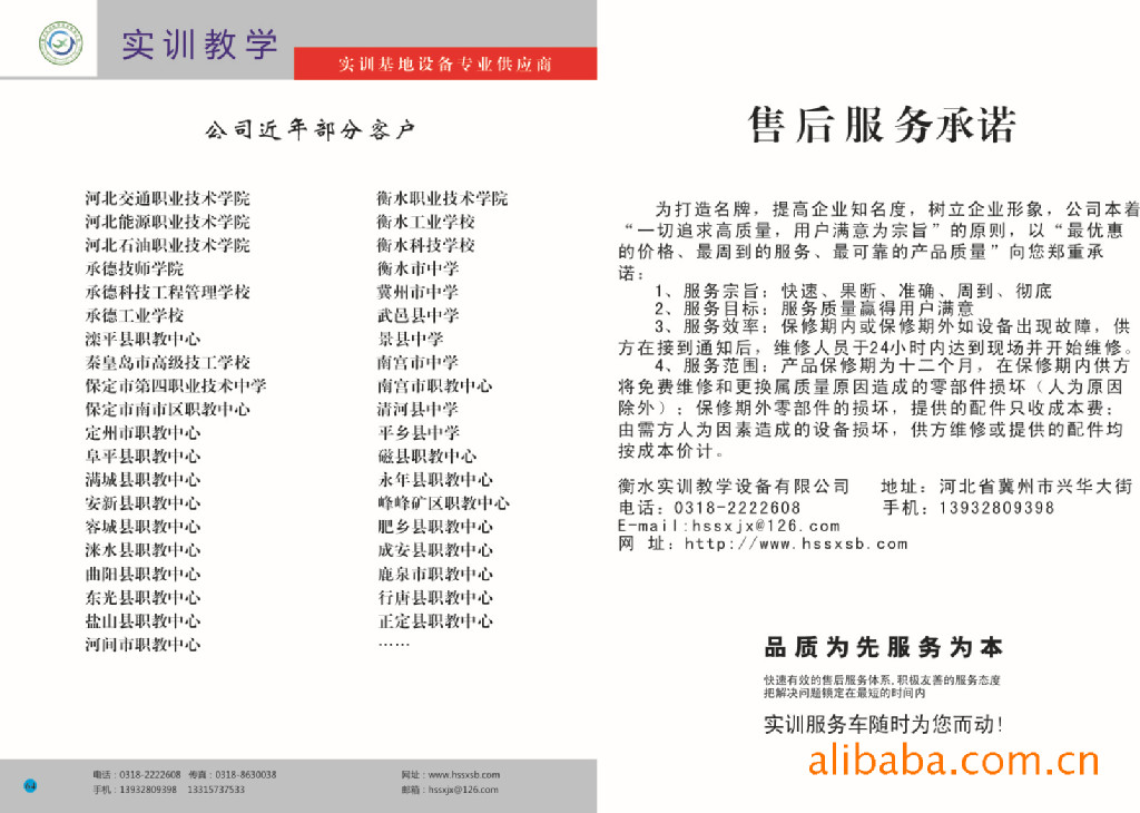 衡水实训教学设备贸易有限公司是教学设备、实训设备、生态农业、汽修设备、汽保设备、各类机床、刀具量具、汽车模拟驾驶器、物理实验室、通用设备、探究设备、美术用品等产品专业生产加工的有限责任公司(自然人投资或控股),公司总部设在河北 衡水 石家庄,衡水实训教学设备贸易有限公司拥有完整、科学的质量管理体系。衡水实训教学设备贸易有限公司的诚信、实力和产品质量获得业界的认可。欢迎各界朋友莅临衡水实训教学设备贸易有限公司参观、指导和业务洽谈。