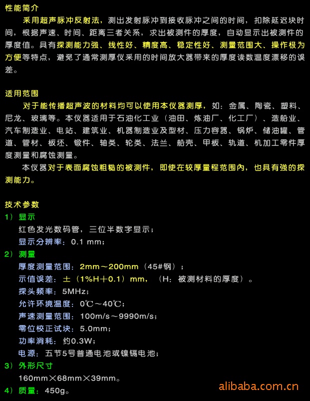 3)示值误差:±(0.5%H+0.1)mm,(H:被测材料的厚度)。