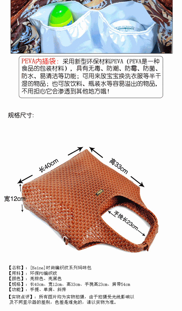 Heine海恩 新款编织纹妈咪包时尚多功能妈妈包限量版YA10030