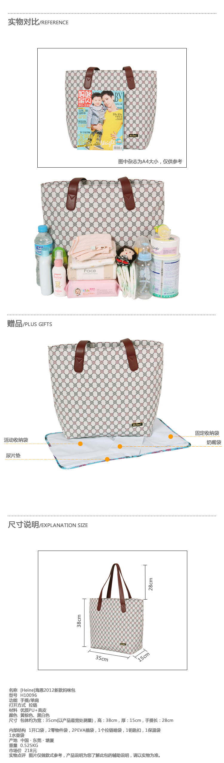 Heine海恩 大容量时尚妈妈包 环保妈咪包多功能母婴包 H10096