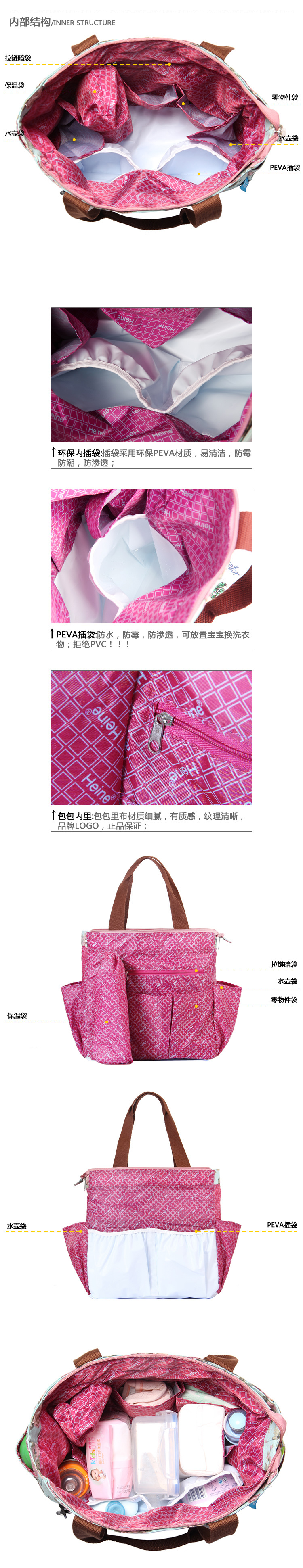 厂家直销 Heine 花之物语系列手提妈妈包、妈咪包