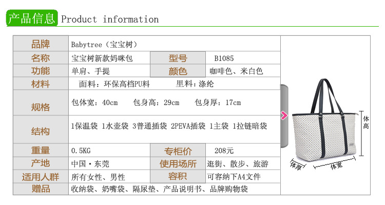 babytree 新款 环保时尚妈咪包多功能妈妈包 单肩手提 B1085