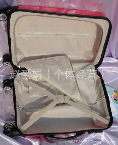 此外,在部件细节设计上突出人性化特色,采用360度无声万向轮,轻便灵活,高级防绣轮轴使箱子以久耐用,高档铝合金拉杆,加强承重力设计,可承重25KG以上.