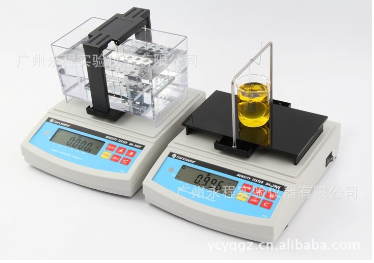DA-300T固液体两用密度计, 应用阿基米德原理,采用台湾进口主机,精度千分之一,操作简便、应用广泛、功能齐全等特点。能判定待测物合格与否,并报警提示。装配免掀盖一体成形铝合金固体测量配件,透明水槽,操作更简便、更快速、更人性化。液本模式采用无记忆式的动态测量法,无需按键记忆。具有3组模式的密度测量功能,测不同液体时,可直接更换砝码无需重新设定。具有浓度的显示方式,还可直接显示波美度。