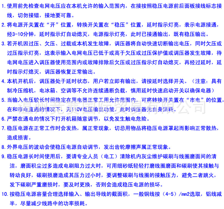 本产品3KVA以下规格为自藕式,有110V和220V两种输出。单相5KVA、三相15KVA以上规格均为补偿式。补偿电路由调压器和补偿变压器等组成。三相30KVA以下规格产品(TNS/SVC系列)均采用分相独立调整结构,其特点是能够有效地消除由于电网或负载三相不平衡造成对电器设备的影响。