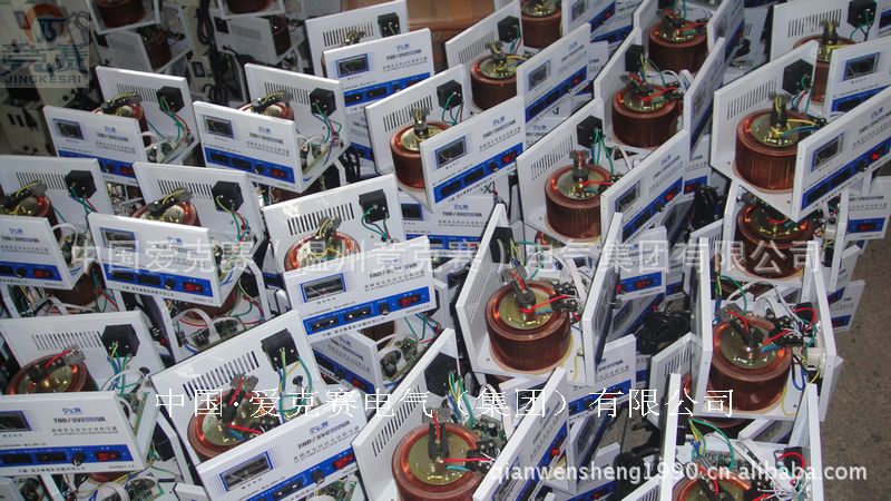 中国爱克赛电气集团有限公司(温州竟克赛电气有限公司)SVC、TND系列单、三相高精度全自动交流稳压器,由接触式自耦高压器、伺服式电动机、自动控制电路等组成,当电网电压不稳定或负载变化时,自动采样稳压器控制电路发出信号驱动伺服电机,调整稳压器自耦调压器碳刷的位置,使稳压器输出电压调整到额定值并达到稳定状态。本稳压器设有短延时、过压等保护功能,根据用户的需要可增设长延时与欠压保护功能。本稳压器可广泛应用于任何用电场所,是一种理想的稳压电源,