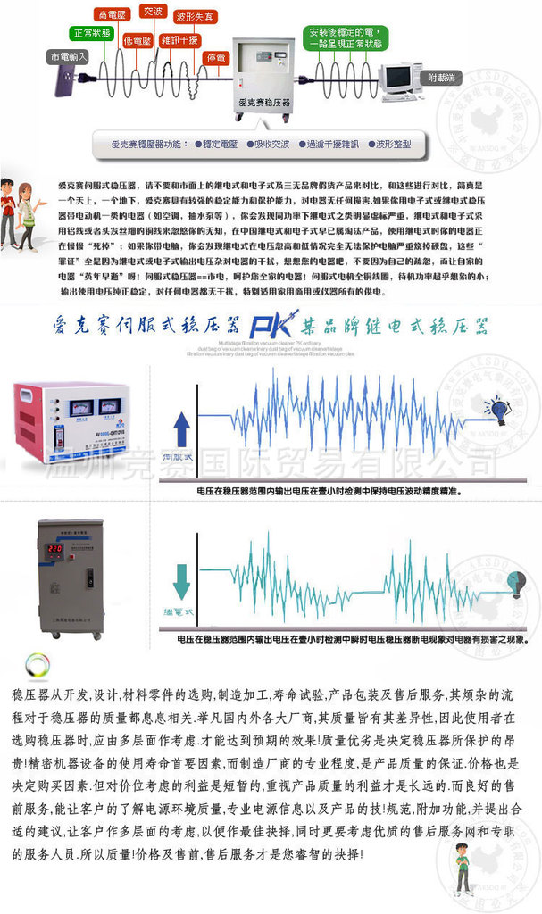 爱克赛TSD-3500VA超低压120V-260V 全自动伺服式空调稳压器 3500W
