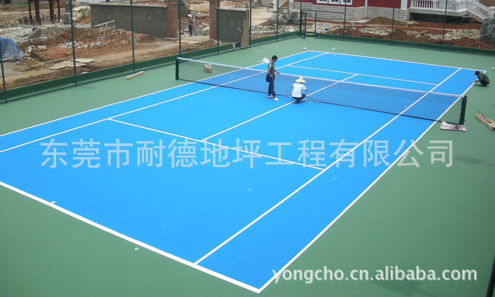 所有运动球场的底层一般以沥青或混凝土为基础,而场地的区分主要按使用的不同而面层材料不同。按造价区分,价格低廉的只有采用丙烯酸涂料,它可以直接在沥青或混凝土底基上施工,其主要构造为:粘合层、纹理层、表面层和漆线。应用范围:室内外网球场、篮球场、羽毛球场、排球场、手球场、曲棍球场等体育运动场地。