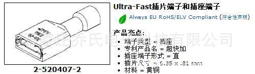 尺寸:- 插片尺寸 (mm [in])= 6.35 x .81 [.250 x .032]