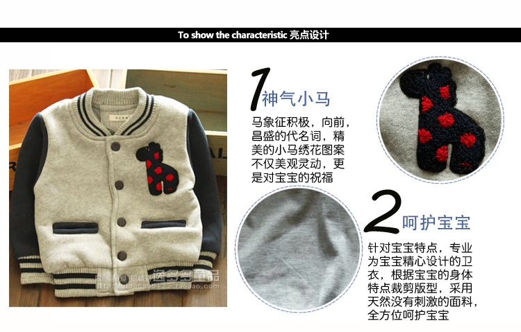 2013秋冬新款爆款 韩版小童加厚保暖卫衣外套 卡通绣花童卫衣批发