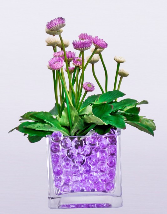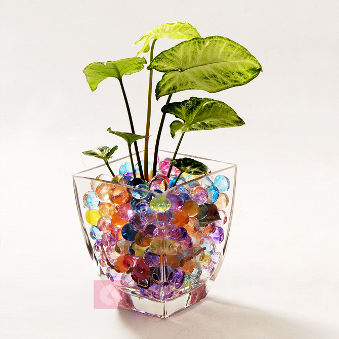 3.水晶泥也可置于非玻璃器皿的花钵中种植花木,方法与一般种植类同;水晶泥可和传统土壤拌和使用,浇透水后,可外出度假旅游1月~2月无忧。