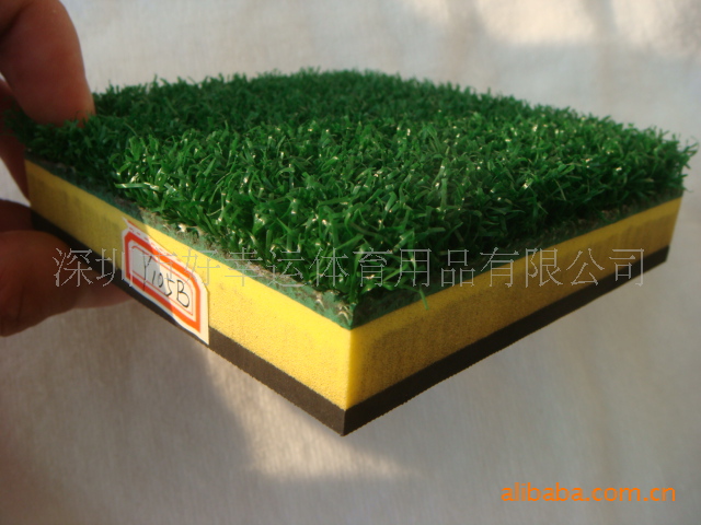 产品结构:13mm尼龙编织弯曲草+2mm绿色灌胶层+10mm高质发泡软板+5mm硬橡胶板