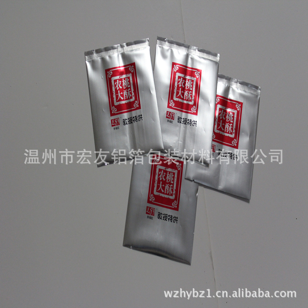 铝箔袋又叫纯铝袋材质:PET/NY/AL/PE(一般包装)PET/NY/AL/CPP(高温蒸煮)厚度:70~180微米袋形:三边封、自立拉链袋、阴阳袋特性:PE——印刷效果好,NY——透氧性低,AL——阻隔性强、不透光、PE——普通包装内层,CPP——高温蒸煮内层 特点:(1)阻隔空气性能强、防氧化、防水、防潮。 (2)机械性能强,抗爆破性能高、抗穿刺抗撕裂性能强。 (3)耐高温(121℃)、耐低温(-50℃)、耐油、保香性能好。 (4)无毒无味,符合食品、药品包装卫生标准。 (5)热封性能好、柔软性、高阻隔性能好。 铝箔袋适合哪些包装 一、软包装铝箔