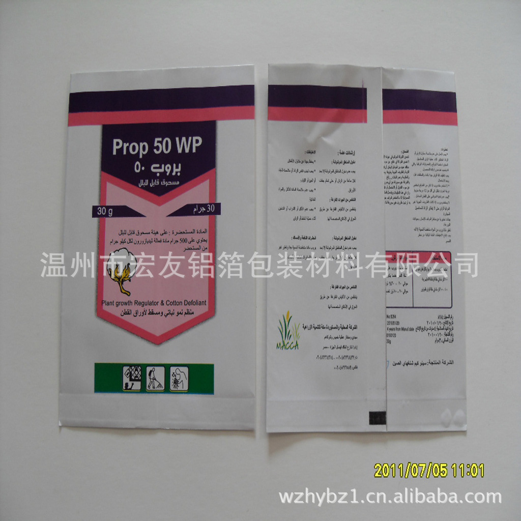铝箔袋又叫纯铝袋材质:PET/NY/AL/PE(一般包装)PET/NY/AL/CPP(高温蒸煮)厚度:70~180微米袋形:三边封、自立拉链袋、阴阳袋特性:PET——印刷效果好,NY——透氧性低,AL——阻隔性强、不透光、PE——普通包装内层,CPP——高温蒸煮内层 特点:(1)阻隔空气性能强、防氧化、防水、防潮。 (2)机械性能强,抗爆破性能高、抗穿刺抗撕裂性能强。 (3)耐高温(121℃)、耐低温(-50℃)、耐油、保香性能好。 (4)无毒无味,符合食品、药品包装卫生标准。 (5)热封性能好、柔软性、高阻隔性能好。铝箔袋包装通常指的是铝塑复合真空包装袋,此类产品适用于大型精密机械设备、化学原料、医药中间体的防潮、避光、真空包装。多采用四层结构,具有良好的隔水、隔氧功能。不受限制,可以量体定做不同规格、样式的包装袋,可制成平口袋、立体袋、风琴袋等多种样式。产品需经GB及ASTM标准检测,产品符合环保方面的要求(可提供第三方检测报告),产品符合欧盟及北美对包装材料最严格的环保标准。
