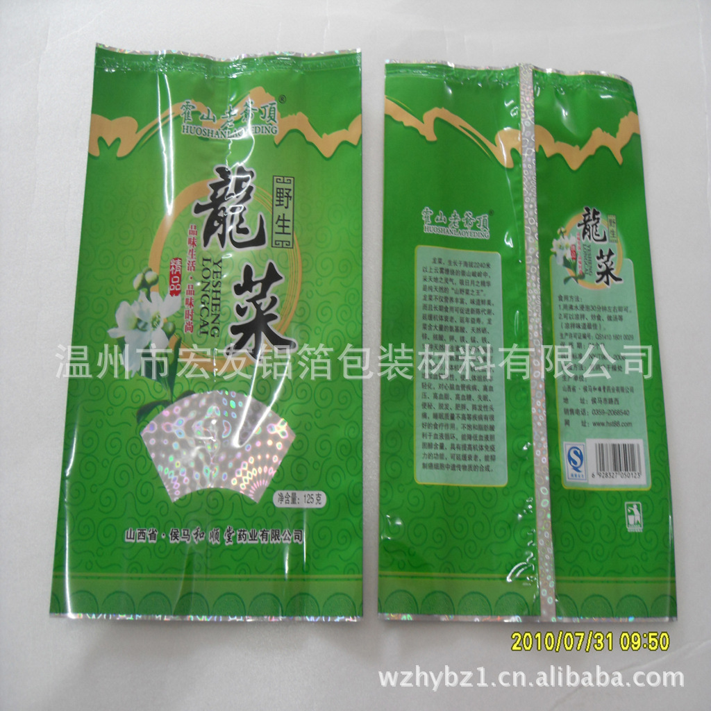 铝箔袋又叫纯铝袋材质:PET/NY/AL/PE(一般包装)PET/NY/AL/CPP(高温蒸煮)厚度:70~180微米袋形:三边封、自立拉链袋、阴阳袋特性:PET——印刷效果好,NY——透氧性低,AL——阻隔性强、不透光、PE——普通包装内层,CPP——高温蒸煮内层 特点:(1)阻隔空气性能强、防氧化、防水、防潮。 (2)机械性能强,抗爆破性能高、抗穿刺抗撕裂性能强。 (3)耐高温(121℃)、耐低温(-50℃)、耐油、保香性能好。 (4)无毒无味,符合食品、药品包装卫生标准。 (5)热封性能好、柔软性、高阻隔性能好。铝箔袋包装通常指的是铝塑复合真空包装袋,此类产品适用于大型精密机械设备、化学原料、医药中间体的防潮、避光、真空包装。多采用四层结构,具有良好的隔水、隔氧功能。不受限制,可以量体定做不同规格、样式的包装袋,可制成平口袋、立体袋、风琴袋等多种样式。产品需经GB及ASTM标准检测,产品符合环保方面的要求(可提供第三方检测报告),产品符合欧盟及北美对包装材料最严格的环保标准。