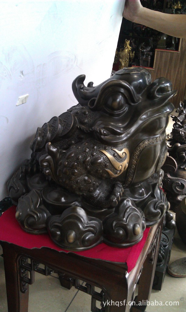 「三腿蟾蜍」的口是会吐钱的,因此蟾蜍的面向屋内或店铺内,可将屋外的钱财送入屋内,使本宅的财运增强,并且兼具堆金积财的运气。