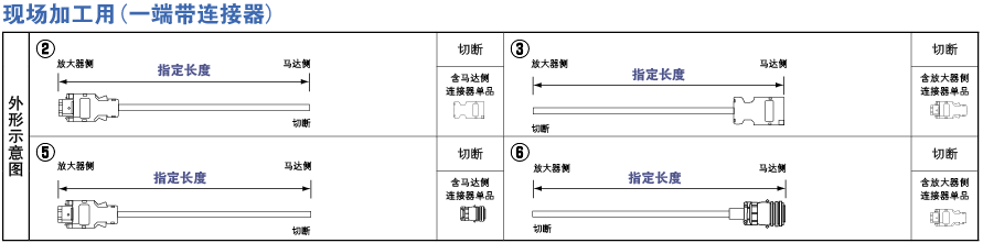 适用放大器 | 适用马达 | 外形示意图 | 类型 | 电缆类型 | 长度(m) |