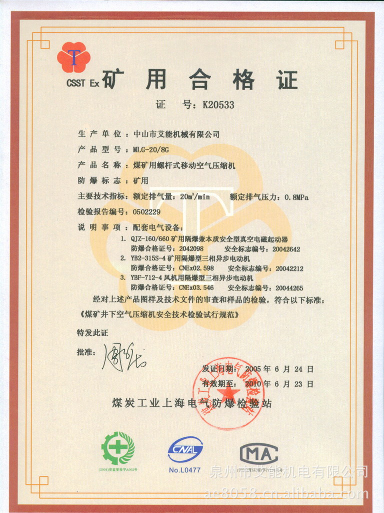 艾能MLG系列煤矿用螺杆式空气压缩机是根据中国煤矿井下环境条件而研制的防爆供气设备,移动灵活,操作简单,维护方便,机组的所有零部件均装置在一台车架上,成为一个机动灵活的井下空压机站,可牵引或推送至用气点附近,接通电源和风管即可投入使用。无需专门洞室,也无需基础固定。作为井下掘进`锚喷支护作业及氮气气源的动力设备,比以前采用地面建立空压站向井下输气的方式有着显著的优点: