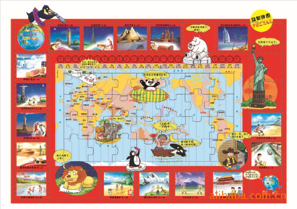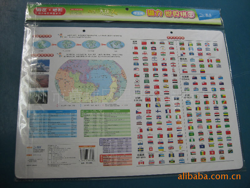 材料:底托表面灰纸印刷加中间铁沙布加灰板背面加印刷纸粘合制成,拼图部分:纸印刷加橡胶软磁0.5MM