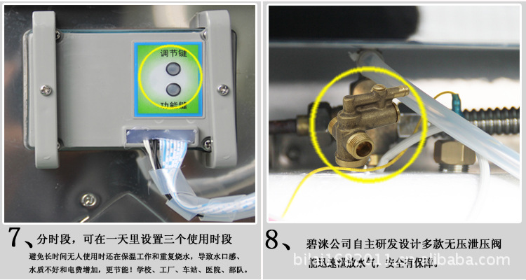 7、可在一天里设置三个使用时段,避免长时间无人使用时还在保温工作和重复烧水,导致水口感、水质不好和电费增加,更节能!学校、工厂、车站、医院、部队、最合适。