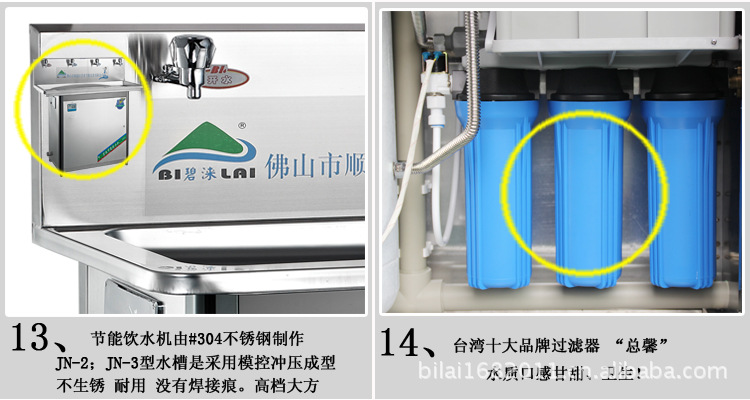 13、节能饮水机由#304不锈钢制作,不会生锈,耐用!JN-2;JN-3型水槽是采用模控冲压成型,没有焊接痕。美观大方,高贵有档次。
