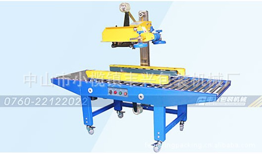 2、封箱机是采用贴胶带对纸箱封口,经济快速、操作容易、保养简单、纸箱包装后平