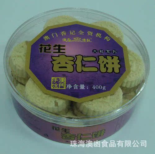 澳门监制 澳凼传统的每样品都传承了 澳门的品质,每个饼皆以传统手艺敲制而成,加以足够火候的焙烤,入口极其 松化。咀嚼时感觉饼粉幼滑、杏仁甘香,浓浓的杏仁饼味慢慢渗出。 甜而不腻,回味无穷。选类上乘,进口的一级杏仁粒, 进口的奶油,奶粉,成本不菲,口感一流,吃后口中余香回味无穷。 温馨提示: 食杏仁饼时,适合以茶品之,尤其是铁观音茶,能把杏仁饼的甘香带到极点,试试便知道。 推荐产品