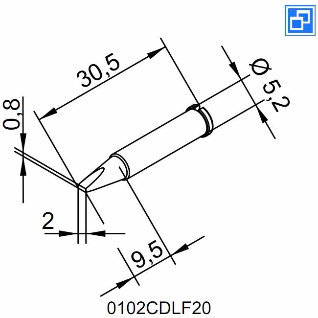 原装现货 德国埃莎ERSA烙铁头烙铁咀0102CDLF20/10 长寿命标题的价格为单支价格,一盒10支,本店单支起卖产品尺寸图如下: