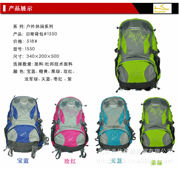 onepolar极地包 登山包户外 礼品 双肩包 旅行背包1550 32L