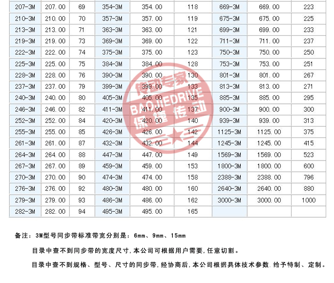 1、产品简介 同步带传动是一根内周表面没有等间距齿的封闭环形胶带和相应的带轮所组成。它综合了带传动、链传动和齿轮传动的各种优点。转动时,通过带齿与轮的带槽相啮合来传递动力。同步带传动具有准确的传动比,无滑差,可获得恒定的速比,传动平稳,能吸振,噪音小,传动比范围大,一般可达1:10,允许线速度可达50m/s,传动效率高,一般可达98%--99%,传递功率从几瓦到数百千瓦。结构紧凑还适用多轴传动,张紧力小,不需润滑,无污染,因而可在不允许有污染和工作环境较为恶劣的场合下正常工作。 目前同步带的主要产品型号有:MXL、XXL、L、H、XH、XXH、T2.5、T5、T10、T20、AT5、AT10、AT20、STD2M、STD3M、STD5M、STD8M、STD14M、HTD3M、HTD5M、HTD8M、HTD14M、RPP3M、RPP5M、RPP8M、RPP14M、RHP3M、RHP5M、RHP8M、RHP14M等系列工业同步带与聚氨脂脂(PU)开口同步带。采用德国进口优质合成氯丁胶为主要原料,配入多种不同用途的辅料;骨架材料均为优质玻璃纤维线绳;带齿表面采用尼龙耐磨高弹力布做保护。具有动态屈绕性好,抗龟裂性能好,臭氧性能优良,耐老化,耐热,耐油,耐磨损等特点。同步带具有耐屈挠性好,伸长率低、高强力、耐热、耐寒、耐老化、耐臭氧、抗龟裂等优点,现有 同步带 30多种型号,2000多种规格,并配套 同步带轮,完全能满足客户的要求,产品性能达到并超过国际标准。 本产品泛用于汽车、烟草、纺织、化工、轻工、家电、冶金、仪表仪器、电线电缆、食品、矿山、石油、机床等机械设备传动装置上。 |