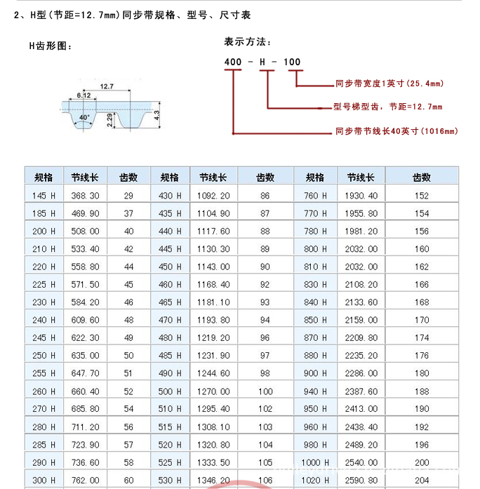 2、橡胶同步带规格、型号及部位尺寸系列表