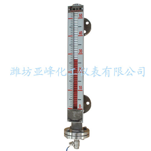 概述: UZ系列磁性液位计也称磁翻柱、磁翻板、磁性浮子液位计,可以在高温、高压、高粘度和强腐蚀条件下,安全可靠地测量液位,读数直观,显示醒目,测量范围大。配上磁性开关和液位远传变送器,可以实现液位(界位)的上、下限报警和控制及远距离检测和控制。该系列产品广泛用于电力、石油、化工、冶金、环保、医药、食品等各行业过程中的液位测量和控制。 UZ系列磁性浮子翻柱式液位计与容器通过侧法兰相连接,这样液位计中的液体的变化实际与容器内液位变化是相一致的。液位计腔内的柱状浮子与液位计外部的磁翻板和开关实际为一组磁性系统。柱状浮子通过磁场影响翻板内的翻柱和开关内的磁性元件,从而将液位变化线性显示出来。 磁翻板的翻柱内装有柱状的小磁钢,而所有翻柱均匀置于铝制的卡槽之中,其轴径向间隔距离为10mm,磁翻柱一半为白色,一半为红色。当液位计中液位上升下降时,浮子随之而动,装在其顶部的永久磁铁的束性磁场带动外翻板的磁翻柱转动180°。当液位上升时由白色翻为红色;反之液位下降时,翻柱由红色变白色。这样磁翻柱在无需任何电源的情况下就可反映出容器内液位的变化。它使液体介质与测量指示完全隔离,为易燃易爆和有毒介质的液位检测提供了安全可靠的手段和方法。 ? 主要技术指标: 测量范围:500 ~ 15000mmm 测量精度:±10mm 腔体材质:OCr18Ni9 工作压力:1.0、1.6 、2.5、4.0、6.4MPa 温度范围:-160℃--350℃ 介质比重:≥0.45g/cm3 介质密度差:≥0.15g/cm3(测量界位) 介质粘度:≤0.02pa.S 变送输出信号:二线制4 ~ 20mADC250Ω负载 连接法兰尺寸:DN20,PN2.5(HG20592-97) 订货须知: 若采用其它材质及法兰尺寸请用户在订货时注明。