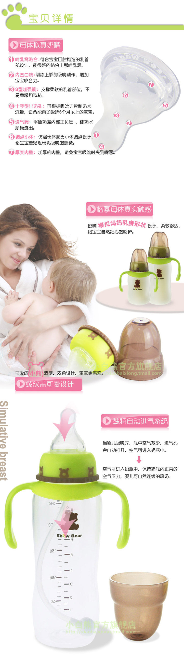 小白熊婴儿奶瓶母体拟真标准口吸管PP奶瓶 带把式 09302 一件代发