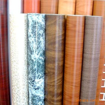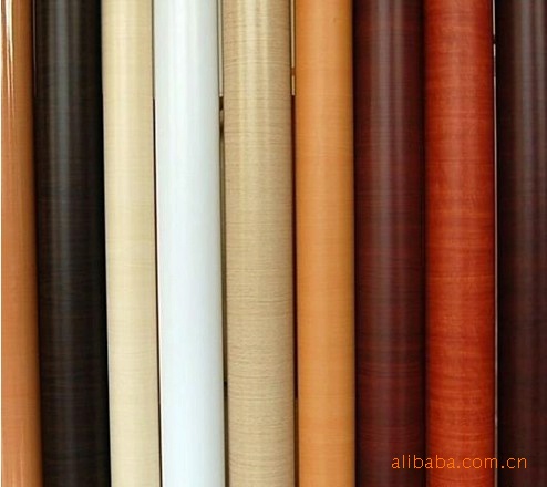 木纹片的纹理有胡桃木、樱桃木、橡木、榉木、枫木、柚木、松木、檀香、花梨等,每一款木纹均有数种颜色以供选择。单色片的颜色从金、银、黑、白、灰到红、黄、蓝、绿、紫,花纹有沙粒、拉丝、哑光、闪点、幻彩、珠光面、光面等,具有无毒无味、耐磨、阻燃、防水、耐酸碱和可塑性。可直接粘贴,无需粘胶和油漆,随意转角拐弯而没接缝,即施工快捷又效果完美。适用家具、橱柜和展柜等的贴面,酒店、宾馆、商场、办公室和家居等是内装潢。是二十一世纪装饰面料新潮流。
