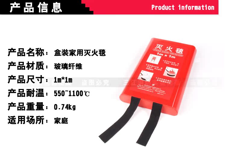 盒装家庭防护灭火防火毯 救生隔热毯 保温毯消防毯1X1米 加厚